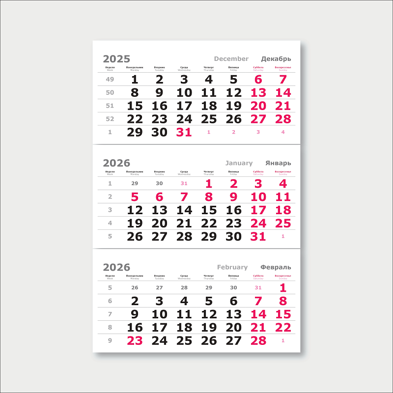 Типография Flyer-Online предлагает самый популярный дизайн календарных квартальных блоков и один из самых востребованных размеров в 2025 году — традиционный 295 х 145 мм. Мы печатаем блоки офсетным способом на оборудовании Heidelberg.